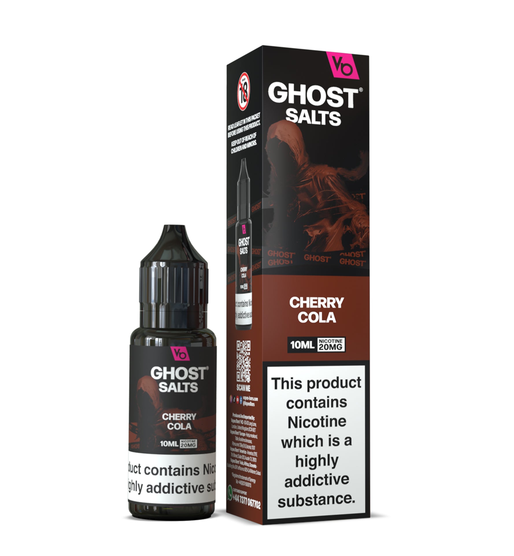 Ghost Salts Cherry Cola offers a nostalgic combination of a classic soda beverage, featuring a full-bodied citrus flavor and a signature fizzy cola taste. This fusion of flavors yields a flavorful and unique vaping experience.